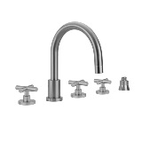Astor Roman Tub Set with High Spout and Hex Cross Handles and Angled Handshower Mount