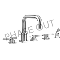 Products > Tub Spouts & Roman Tub Sets > Contempo Downtown Roman Tub Set with Peg Lever Handles - Square Escutcheons and Angled Handshower Holder